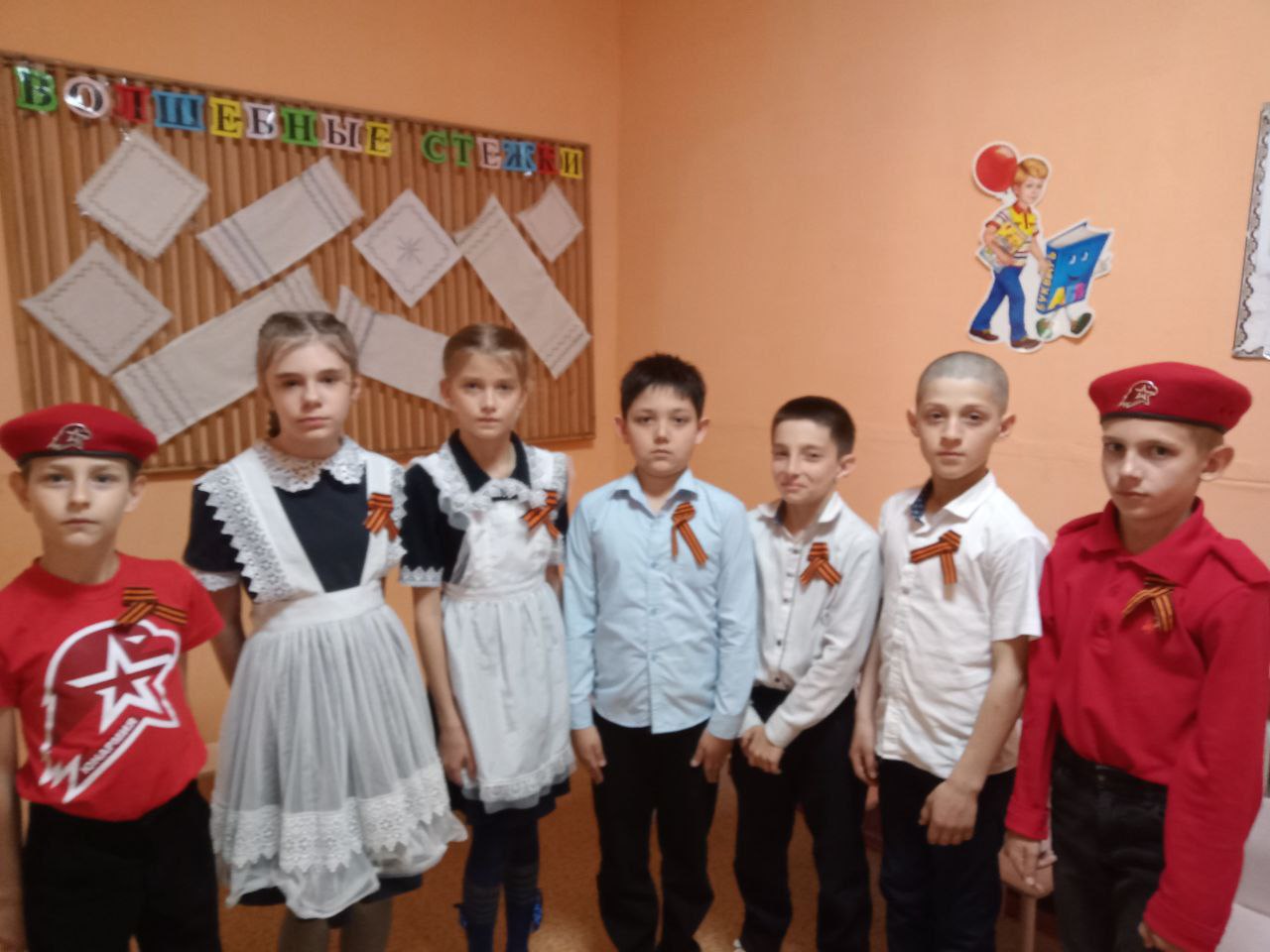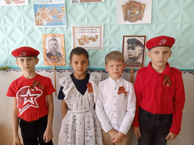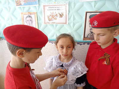 В честь Дня Победы, юнармейцы, распространили среди учеников 1-4 классов символ памяти и героизма, рассказали о важных фактах символа военной доблести и славы.