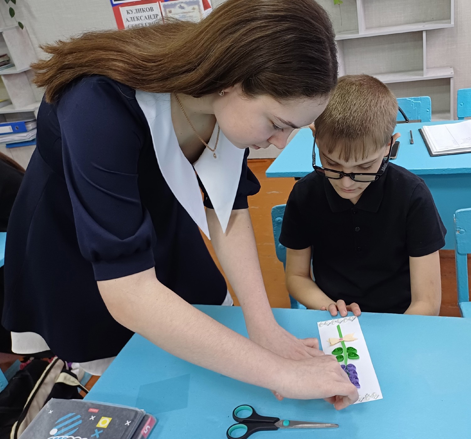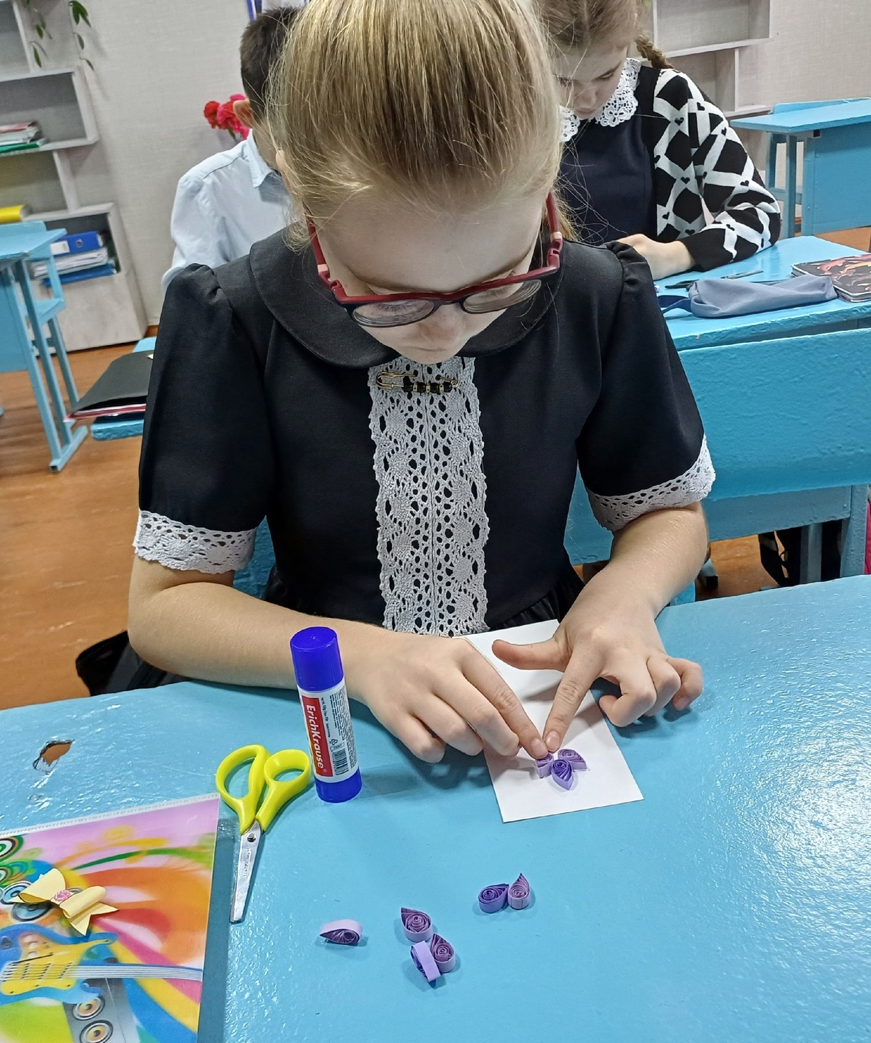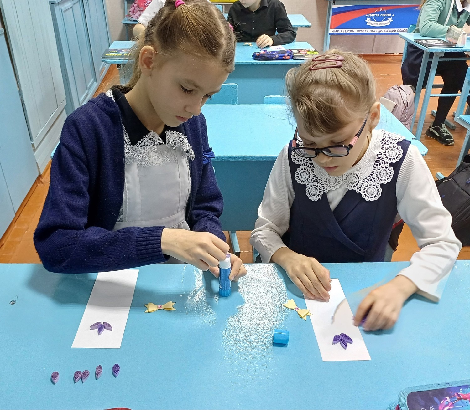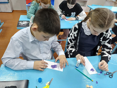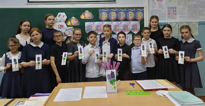 Педагоги Черенкова В.А., Фещенко Е.В., Распаркина Н.Н. совместно с активистами первичной организации «Движение Первых» провели для ребят мастер – класс по изготовлению открытки с изображением лаванды с использование техники «Квиллинг». Пятиклассники изготовили по одной веточке лаванды, вложив в работу любовь и тепло своих сердец.