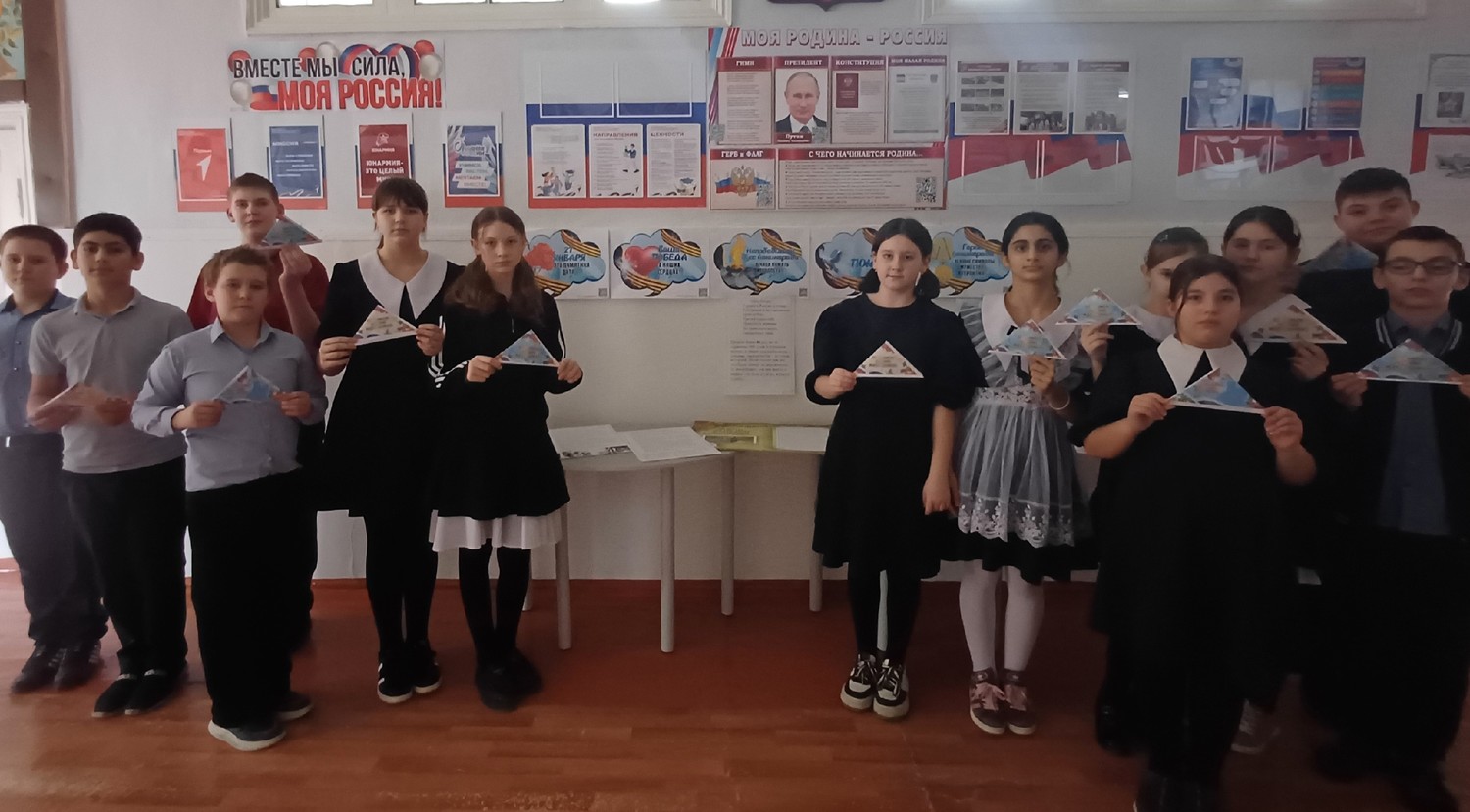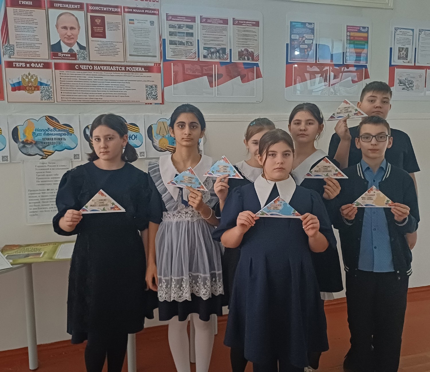Для поддержки боевого духа военнослужащих школьники написали письма для солдат. Каждый нашёл свои слова поддержки для участников специальной военной операции: благодарили за стойкость и мужество. Ребята выразили признательность российским солдатам, написали, что они гордятся настоящими защитниками Родины и желают им скорейшего возвращения домой.