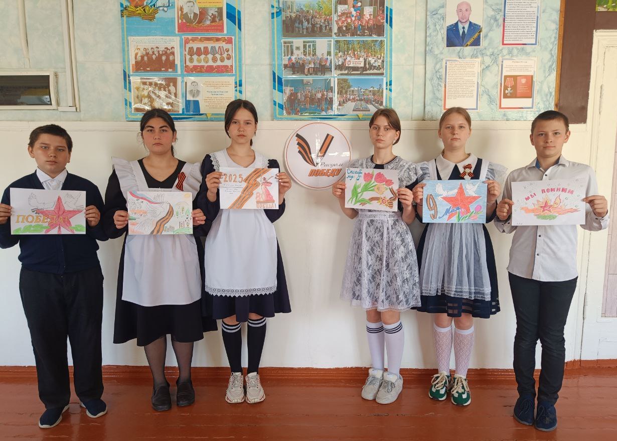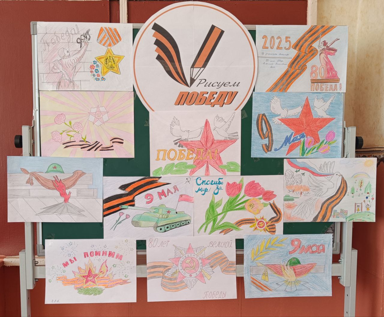 Ученики 7 класса совместно с учителем Чеховой М. Е. и классным руководителем (советником директора по воспитанию) Кремневой А.Н. приняли участие во Всероссийской народной Патриотической Акции "Рисуем Победу", посвященной славному ратному и гражданскому подвигу поколения победителей в год 80-летия победы в Великой Отечественной войне.