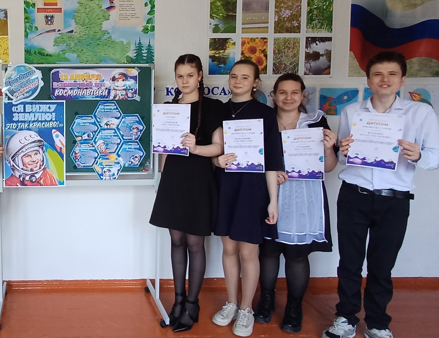 12 апреля наша страна отмечает День Космонавтики. Мы помним эту дату и гордимся тем, что именно наш, русский человек, покорил просторы космоса. В этот день во всех школах России проходят различные тематические мероприятия. Ученики 9 класса Ново-Павловской школы вместе с классным руководителем приняли участие во Всероссийской викторине "Космическое путешествие" на научно - образовательной платформе "Цифровая наука". Формат викторины — онлайн - тестирование. После прохождения теста ребята и педагог получили сертификаты участника или Диплом 1, 2, 3 степени.