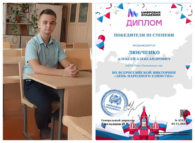 Ученик 11 класса принял участие во Всероссийском тестировании, посвященном Дню народного единства. Этот праздник отмечается в России 4 ноября и символизирует единство и сплоченность многонационального народа страны. В рамках мероприятия Алексей прошел тест, который включал вопросы о истории и культуре России, а также о значении Дня народного единства. Участие в таком мероприятии позволило не только проверить свои знания, но и глубже погрузиться в изучение истории своей страны, осознать важность единства и согласия в обществе.