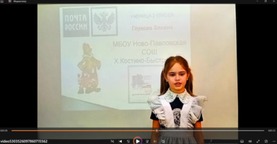 Ученица 2 класса Глухова Эллина под руководством классного руководителя Рыловой Е. Н. приняла участие во втором этапе регионального конкурса видеороликов "Профминутка" и стала победителем в номинации "Лучший рассказчик".