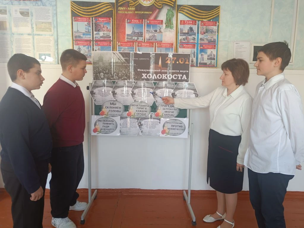 Советник директора по воспитанию Алла Николаевна Кремнева совместно с обучающимися организовала выставку-инсталляцию «Стена памяти», посвященную Международному дню памяти жертв Холокоста.