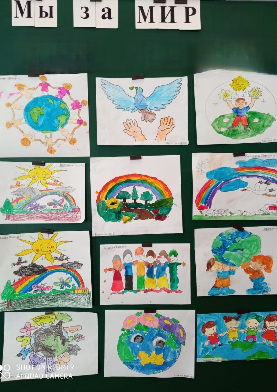 В рамках федерального партийного проекта «Историческая память» учащимися начальных классов Ново-Павловской школы была подготовлена выставка рисунков "Мы за мир во всём мире!", в которой ребята выразили своё желание жить без конфликтов и войн, в согласии и взаимоуважении.