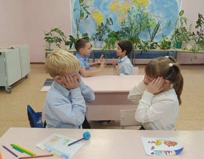 Педагог Кремнева Алла Николаевна предложила ребятам изобразить карту Страны Эмоций. Дети нарисовали «Океан гнева», «Горы страха», «Островок Моего Спокойствия», затем обсудили свои рисунки. Школьникам так же понравилось выполнять упражнения «Зеркало эмоций», «Эмоциональный термометр», «История про Зайку».